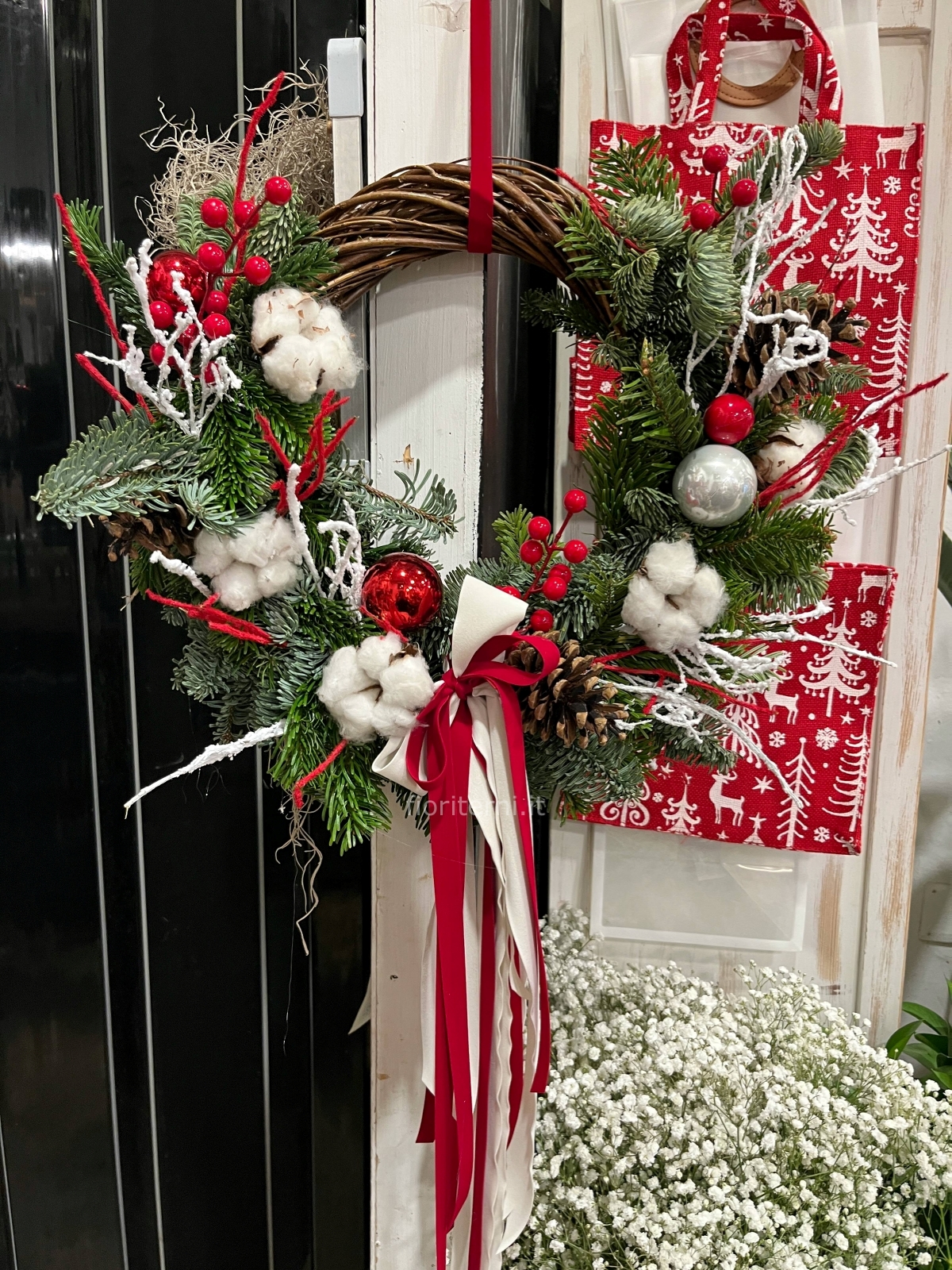 | Coroncina natalizia con abete, bacche e decori. Cod. 21035 |